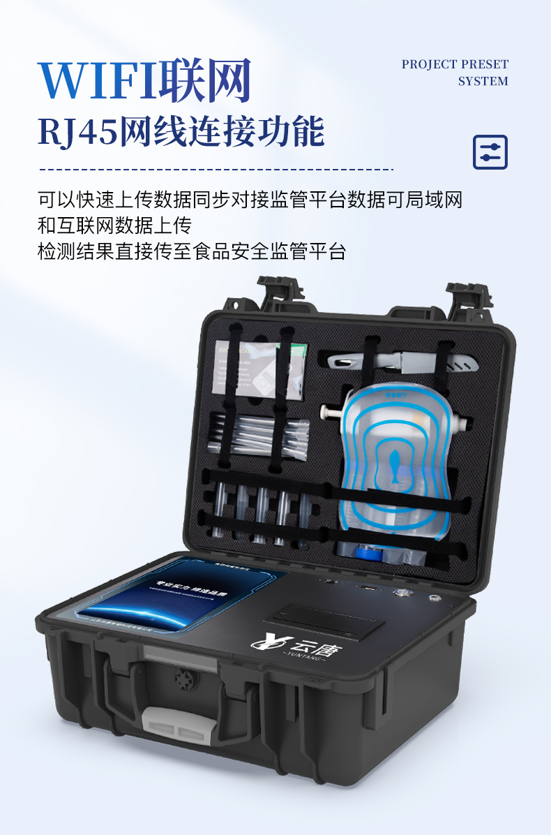 7、圖像調整功能:可根據金標卡讀取圖像進行多方位調整,使其更精準讀取結果。 | 8、儀器檢測系統擁有龐大數據庫,并且構建了完善的檢索、修訂功能。食品庫涵蓋多種樣品名稱,可按需添加或刪除、編輯樣品名稱;產品數據庫以及歷史檢測記錄支持一鍵檢索功能。 | 9、系統打印自定義化,打印格式多樣化,產品合格證(國家標準要求),二維碼,抽樣信息、檢測信息,受檢信息、復核信息、抽樣日期、檢測日期等信息結果,可按需求自行設置打印內容。 | 10、A4紙版本報告打印功能:設備擁有兩種結果展示方式,可以自動生成A4打印模板和小票打印模板兩種樣式,可通過WiFi及網線等方式鏈接外置打印機可進行打印 | 11、儀器具有 wifi 聯網上傳、RJ45網線連接功能,可以快速上傳數據。同步對接監管平臺,數據可局域網和互聯網數據上傳,檢測結果直接傳至食品安全監管平臺。進行區域食品安全監管及大數據分析處理與數據統計,檢測區域食品安全長短期動態,達到食品安全問題預估、預警。 | 12、設備支持U盤存儲,標準USB接口,免驅動安裝。檢測結果存儲容量20萬條以上,可生成Excel表格,進行一鍵拷貝,并具有登錄保護功能,可設置用戶名及密碼,規范不同人員操作權限,防止非工作人員操作,并且可以進行重新校準、鎖定、恢復出廠設置功能。儀器固件可升級,后期檢測項目可擴充。 | 13、儀器具備遠程升級功能,可定向分客戶分儀器更新,開機后自動更新,并可持續性免費更新系統版本,無需像傳統產品返廠更新,節省時間及人力成本并避免了物流運輸返廠升級導致設備損壞的潛在風險。 |