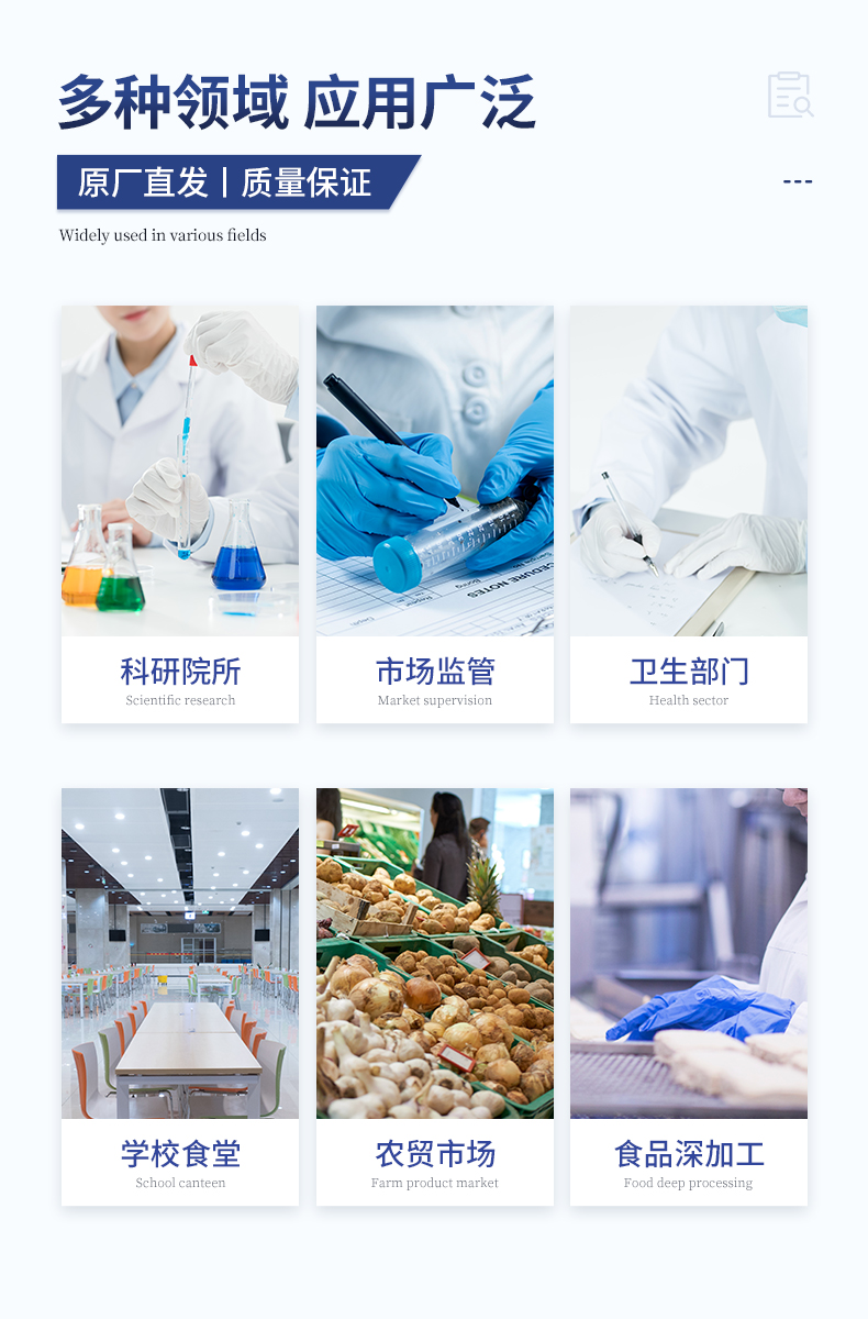 可現場快速檢測底料中非食用化學物質、濫用食品添加劑、農藥殘留、獸藥殘留、重金屬、抗生素類殘留、激素類殘留、毒素類殘留、化學類殘留等多項目的快速定性定量檢測。如底料中的山梨酸鉀、苯甲酸、甜蜜素、安賽蜜、黃曲霉B1等快速檢測。 該多功火鍋底料檢測儀為集成化食品安全快速檢測分析設備,廣泛應用于食藥監局、衛生部門、底料加工、工商執法等單位使用。