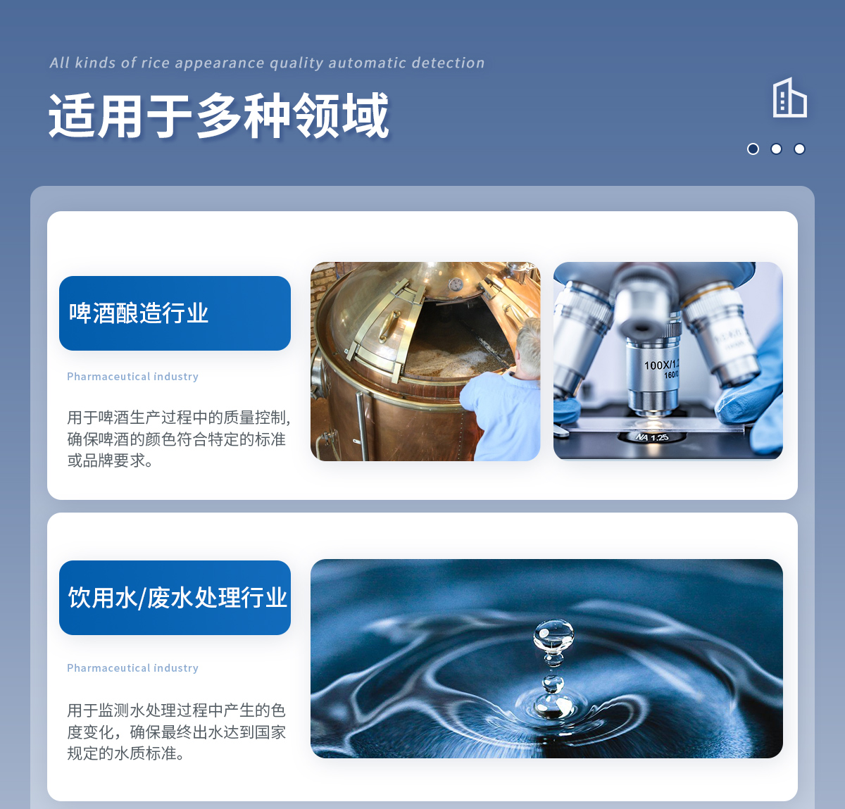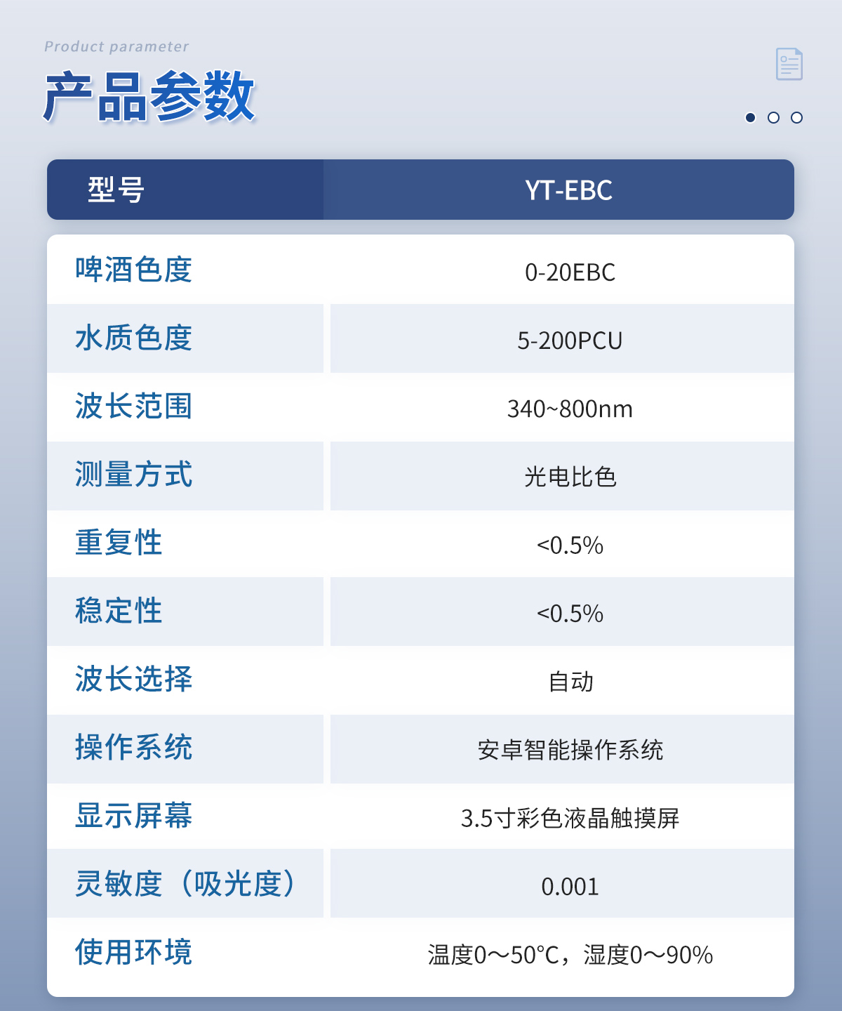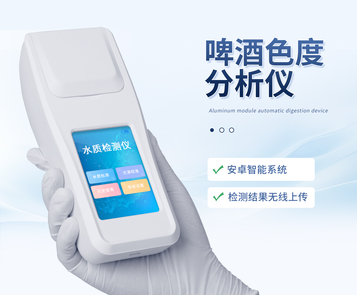 啤酒色度測定儀采用鉑-鈷標(biāo)準(zhǔn)色度法,用于測定溶解狀態(tài)的物質(zhì)所產(chǎn)生的顏色,儀器采用國家標(biāo)準(zhǔn)GB5750中所規(guī)定的鉑-鈷色度標(biāo)準(zhǔn)溶液進行標(biāo)定,采用鉑-鈷色度作為計量單位。
