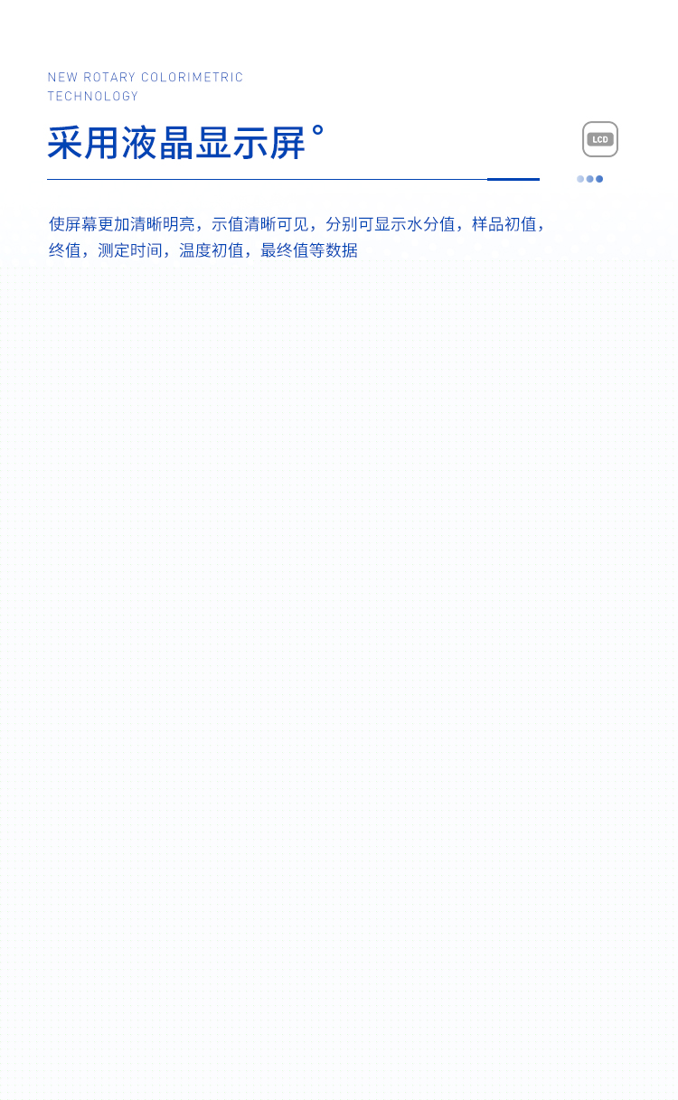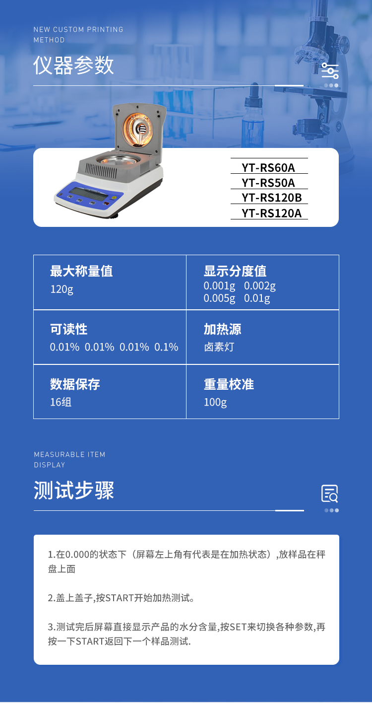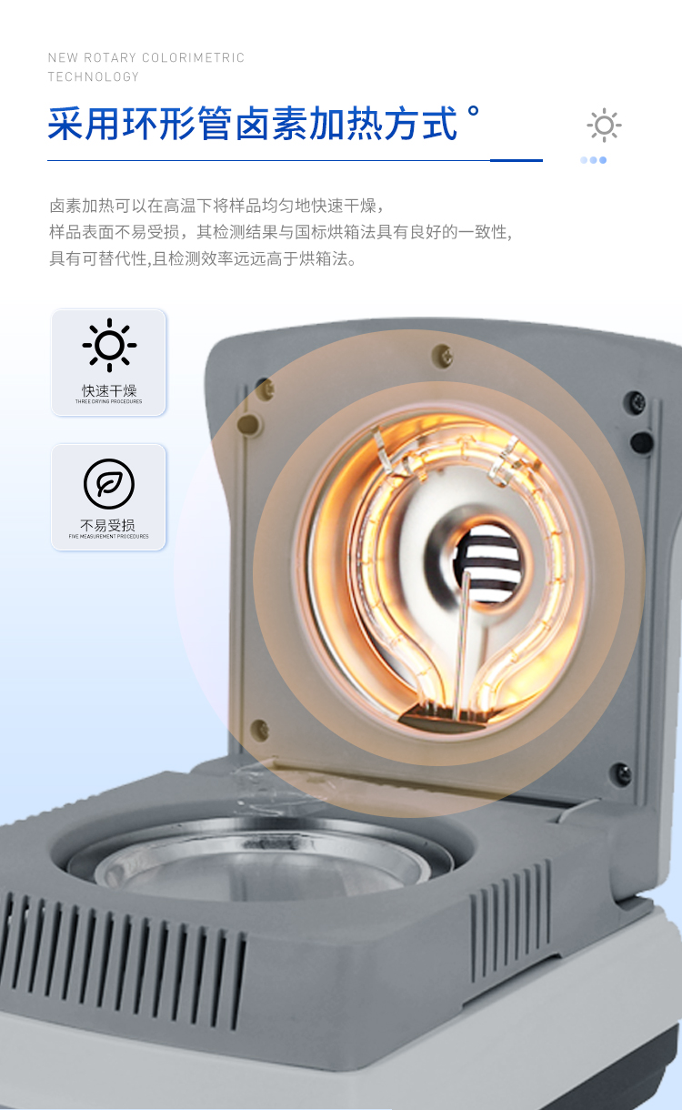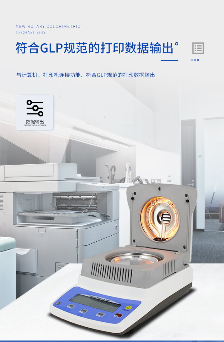 環(huán)狀的鹵素?zé)舸_保樣品得到均勻加熱,操作簡便、測量準(zhǔn)確。水分測定儀在測量樣品重量的同時,儀器采用環(huán)形管鹵素加熱方式,快速干燥樣品,在干燥過程中,水分儀持續(xù)測量并即時顯示樣品丟失的水分含量%,干燥程序完成后,*終測定的水分含量值被鎖定顯示。與國際烘箱加熱法相比,鹵素加熱可以在高溫下將樣品均勻地快速干燥,樣品表面不易受損,其檢測結(jié)果與國標(biāo)烘箱法具有良好的一致性,具有可替代性,且檢測效率遠(yuǎn)遠(yuǎn)高于烘箱法。智能化操作,一般樣品只需幾分鐘即可完成測定。該儀器操作簡單,測試準(zhǔn)確,顯示部分采用液晶顯示屏-使屏幕更加清晰明亮,示值清晰可見,分別可顯示水分值,樣品初值,終值,測定時間,溫度初值,*終值等數(shù)據(jù),并具有與計算機,打印機連接功能、符合GLP規(guī)范的打印數(shù)據(jù)輸出。