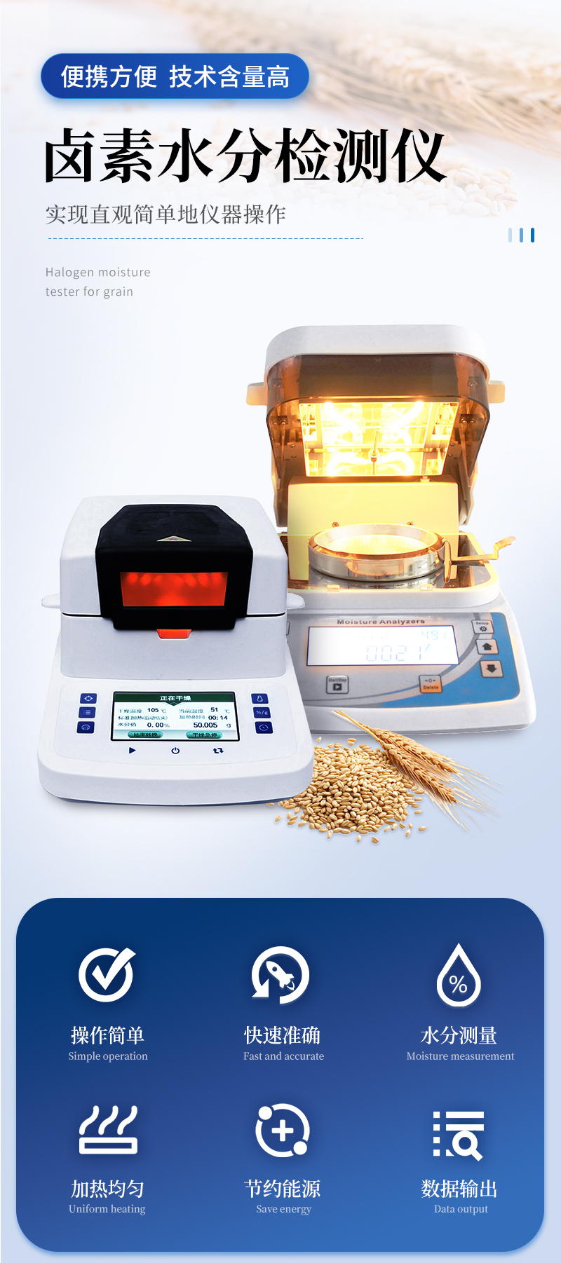 先咨詢(xún)優(yōu)惠福利,再購(gòu)買(mǎi),價(jià)格更便宜,更實(shí)惠。 在線咨詢(xún) 技術(shù)問(wèn)題鹵素水分測(cè)定儀是我公司新研制的新型快速水分檢測(cè)儀器。鹵素水分測(cè)定儀采用國(guó)際***的稱(chēng)重系統(tǒng)【電磁平衡傳感器】。其特點(diǎn)是稱(chēng)量準(zhǔn)確可靠、顯示快速清晰并且具有自動(dòng)檢測(cè)系統(tǒng)、簡(jiǎn)便的自動(dòng)校準(zhǔn)裝置以及超載保護(hù)等裝置。是一種新型快速的水分檢測(cè)儀器。