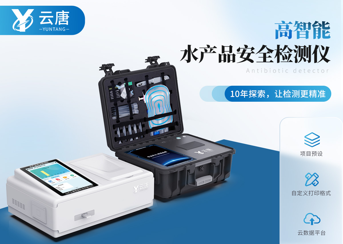 山東云唐智能科技有限公司生產(chǎn)的水產(chǎn)品安全檢測儀可適用于魚、蝦等水產(chǎn)中孔雀石綠、氯霉素、硝基呋喃類:呋喃唑酮(AOZ)、呋喃它酮··· 熱線:133-7109-8225